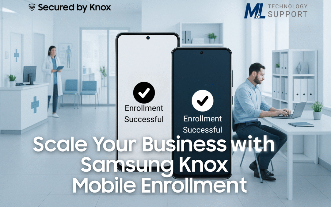 Whether you’re running a medical clinic, a retail chain, or a logistics firm, keeping costs down while expanding is critical. Samsung Knox Mobile Enrollment eliminates manual labor and reduces downtime during onboarding. M&L Technology Support ensures every dollar spent adds value to your operations.